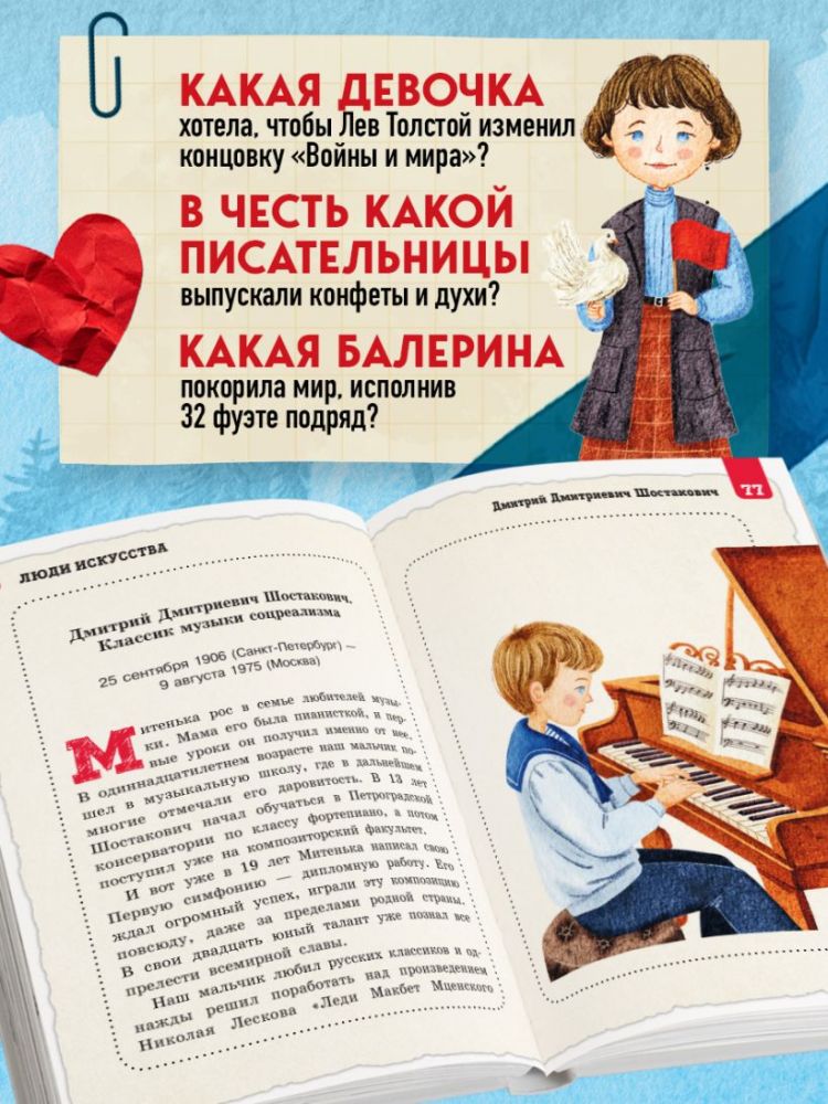 В ней собраны герои разных эпох: писатели и поэты, художники и музыканты, ученые и путешественники, императоры и смелые первооткрыватели.