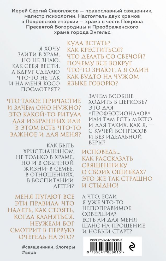 Книга священника Сергия Сивоплясова «А если по-простому?.. Живой разговор о вере, храме и жизни с Богом» — это душевный и искренний разговор с читателем, который только начинает свой путь к вере.
