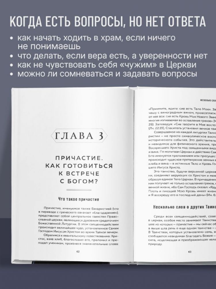 Словно бережный собеседник, автор простым языком объясняет: как переступить порог храма, зачем нужно креститься, что означают главные Таинства — Исповедь и Причастие. Вы найдете практические советы, основанные на личном опыте. Книга станет для каждого надежным спутником в самых разных ситуациях: от освоения молитвы и поста до вопросов о семейной жизни.