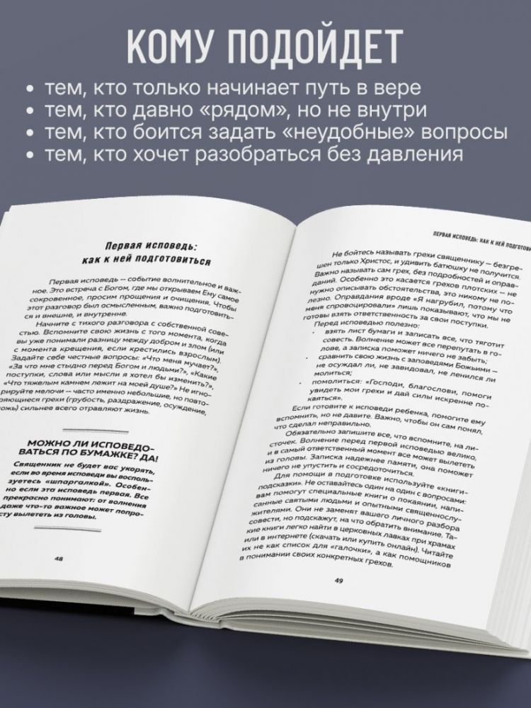 Если известный труд архимандрита Иоанна (Крестьянкина) «Опыт построения исповеди» можно назвать подробной и мудрой картой для глубокого покаянного делания, то книга отца Сергия — это добрый и ясный указатель на самой первой развилке дороги. Она не заменяет, а предваряет и подготавливает: мягко берет за руку, отвечает на самые простые вопросы ищущего человека и помогает сделать первые, самые важные шаги без страха и формализма. Ее простой язык, уважение к исканиям читателя и ориентация на повседневность делают эту книгу идеальным началом пути и надежным компасом для каждого, кто хочет найти дорогу к храму.