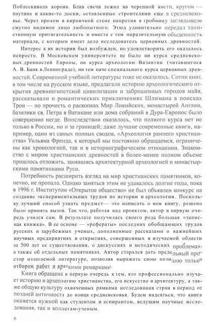Книга состоит из очерков по истории исследования древностей христианской цивилизации от ее зарождения в эпоху поздней античности до позднесредневекового периода в Европе, Азии и Северной Африке. Параллельно вводятся специальные экскурсы.