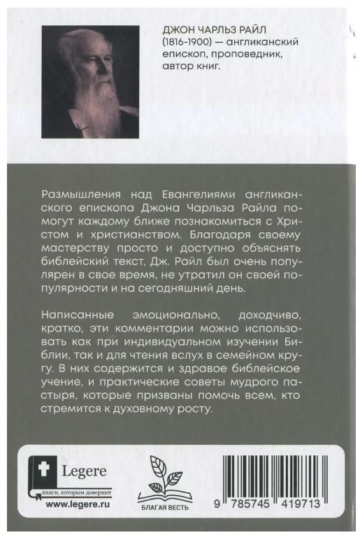 Размышления над Евангелиями англиканского епископа Джона Чарльза Райла помогут каждому ближе познакомиться с Христом и христианством. Благодаря своему мастерству просто и доступно объяснять библейский текст, Дж. Райл был очень популярен в свое время; не утратил он своей популярности и на сегодняшний день.