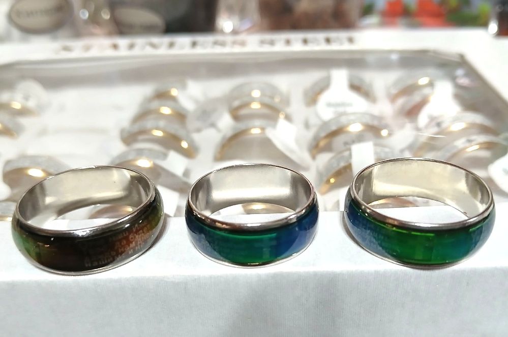 В зависимости от температуры тела, колечко меняет цвет: от темно коричневого, через зеленый в синий.