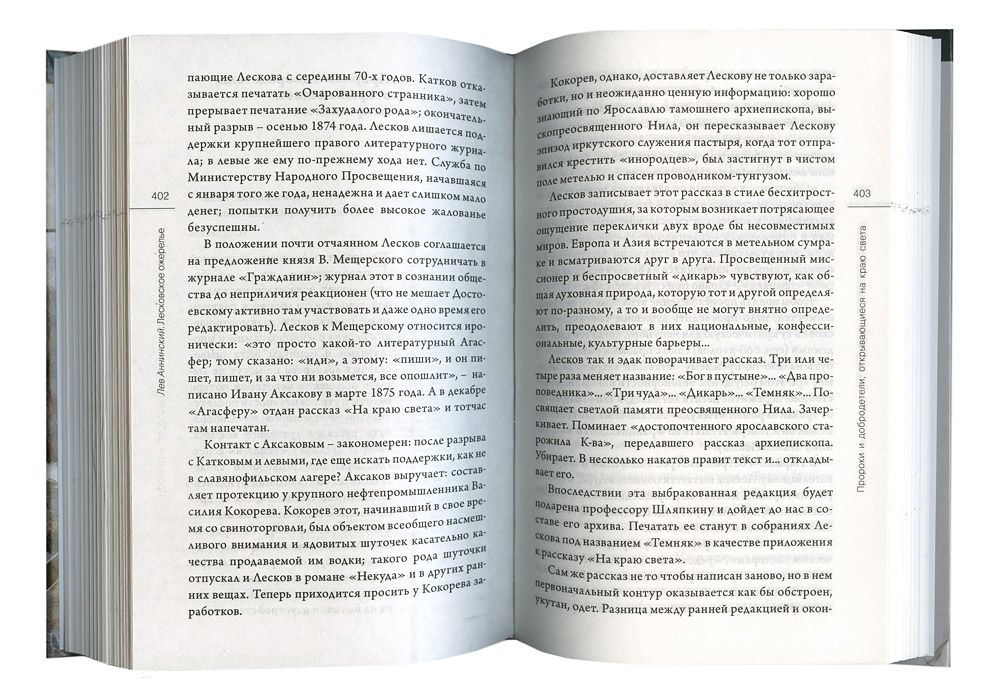 Первое издание книги раскрывало судьбу раннего романа Н. С. Лескова, вызвавшего бурю в современной ему критике, и его прославленных произведений: "Левша" и "Леди Макбет Мценского уезда", "Запечатленный ангел" и "Тупейный художник". Первое издание было хорошо принято и читателями, и критикой. Второе издание дополнено двумя новыми главами о судьбе "Соборян" и "Железной воли". Прежние главы обогащены новыми разысканиями, сведениями о последних событиях в жизни лесковских текстов. Автор раскрывает сложную судьбу самобытных произведений Лескова. Глубина и неожиданность прочтения текстов, их интерпретации в живописи, театре, кино, острый, динамичный стиль привлекут к этой книге и специалистов, и широкие круги читателей.