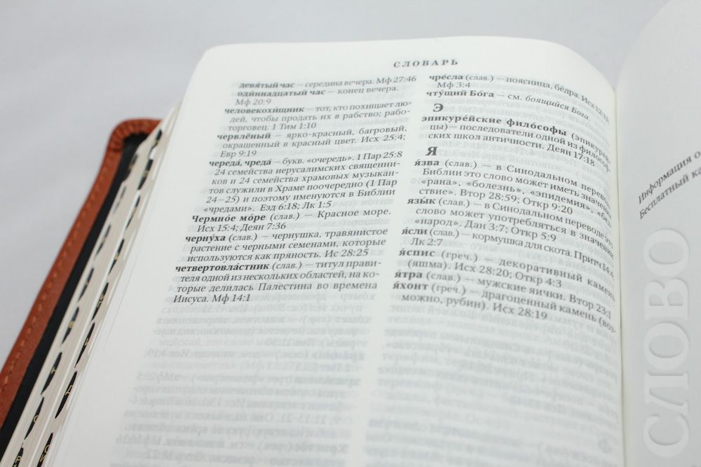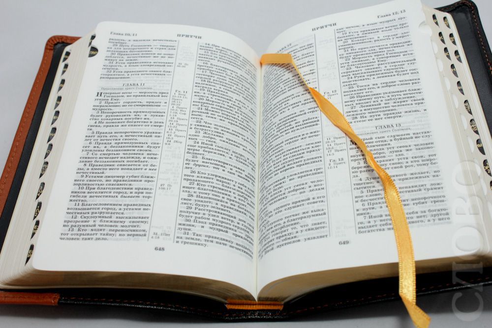 Синодальный перевод. Текст разделен на две колонки, между которыми находится указатель параллельных мест.