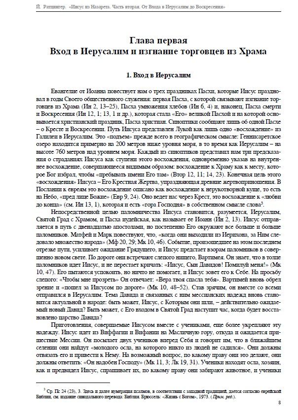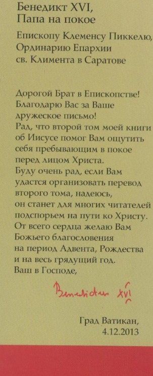 В своей первой написанной в сане понтифика книге Йозеф Ратцингер (Папа Бенедикт XVI) подводит своеобразный итог многолетним трудам, в центре которых неизменно оказывается главный вопрос — постижение истинного значения Иисуса Христа. Книга, работа над которой началась в 2003 году, адресована не только ученым-богословам и церковнослужителям, по всему христианскому миру. Автор, убежденный противник популистских истолкований и псевдоисторических реконструкций образа Христа, стремится открыть читателям «своего» Иисуса и через параллели с современностью приблизить Его к нам. «Иисус из Назарета» представляет собой первую часть задуманного объемного труда и охватывает период от Крещения в Иордане до Преображения.