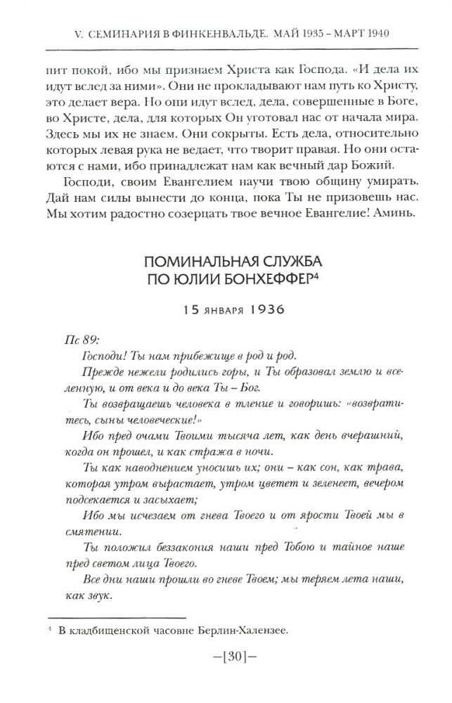 подготовительной практикой перед проповедью, размышления над текстом Писания имели для него самостоятельную ценность. Завершают том выдержки из «Сопротивления и покорности», имеющие особую значимость для понимания пасторского служения Бонхеффера.