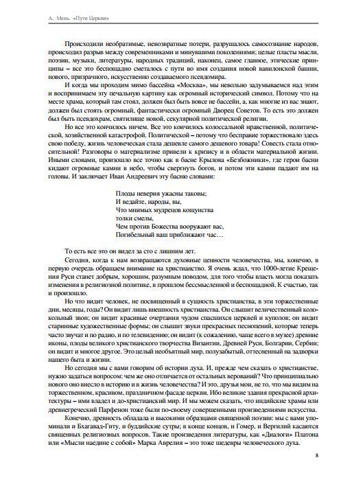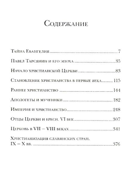 В книге собраны лекции о. Александра Меня, прочитанные им в 1989-1990 гг. В них о. Александр рассказывает о становлении христианства в первые века (от I до X в.), о святых и мучениках, о христианских философах и богословах, об отцах Церкви и проповедниках евангельской вести как на Востоке, так и на Западе. Лекции публикуются впервые.