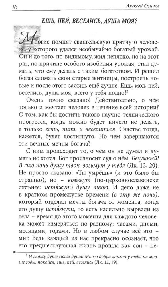 Впервые книга выдающегося богослова Алексея Ильича Осипова "Посмертная жизнь души", посвященная проблемам бытия человека за гранью смерти, вышла в издательстве Данилова монастыря в 2005 году и тех пор множество раз переиздавалась. Нынешнее издание дополнено и существенно переработано с тем, чтобы на основе святоотеческих учений более глубоко осмыслить самые трудные вопросы. Как понять вечность с помощью наших земных мерок? Как действуют в посмертье наши непреодолённые страсти? Геенна - это место наказания и пребывания души или её собственное состояние? Будут ли блаженствовать мои родные, если они окажутся в раю, а я - в аду? Как именно действует молитва на посмертное состояние души? Никого не могут оставить равнодушными эти глубинные вопросы, эта великая тайна человеческой жизни в двух измерениях - во времени и в вечности. Книга поможет читателю взглянуть на загробный мир через призму собственной жизни.