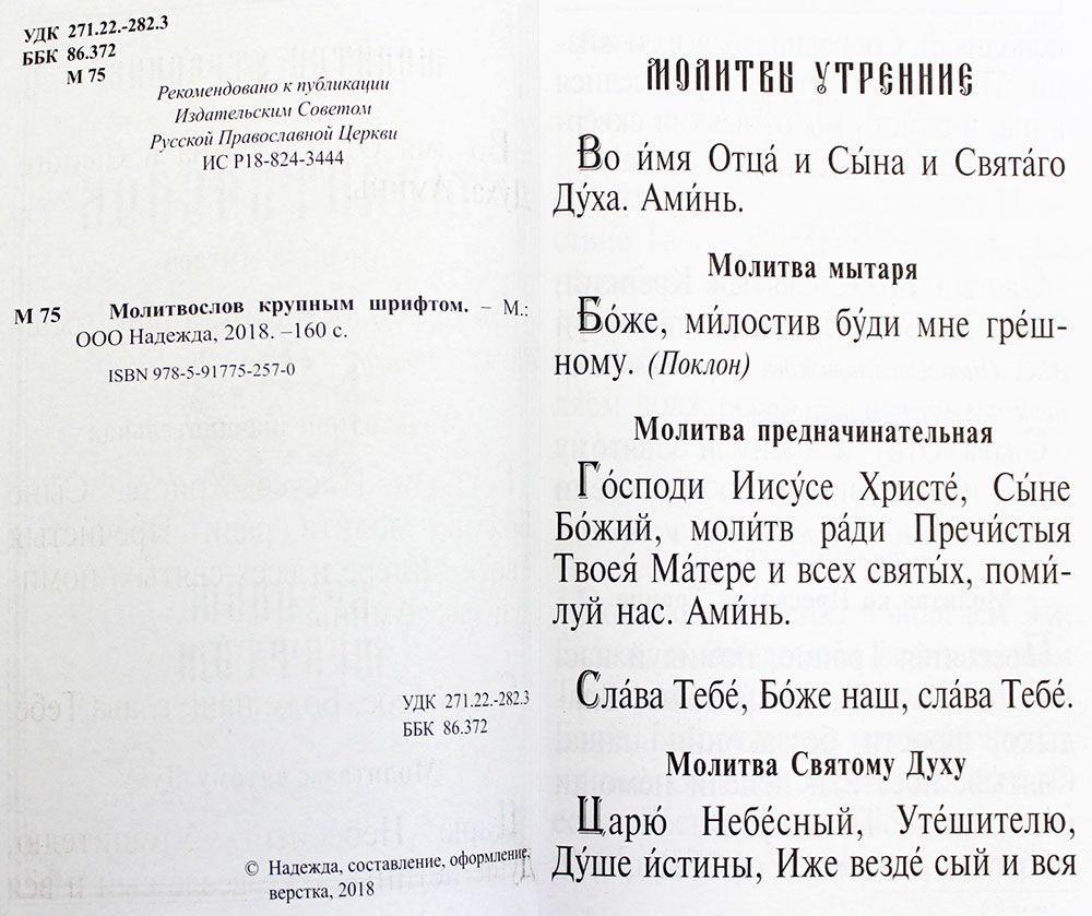 Данный молитвослов набран крупным шрифтом в помощь слабовидящим и для чтения в слабом освещении. Содежит повседневное молитвенное правило православного христианина: молитвы утренние и вечерние, каноны совмещённые и последование ко святому причащению.