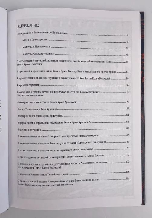 В настоящее издание входят главы «Требника» Петра (Могилы), посвященные таинству причастия и подготовке к нему мирян и священнослужителей. Книга репринтным способом воспроизводит соответствующие главы оригинального издания 1646 г.
