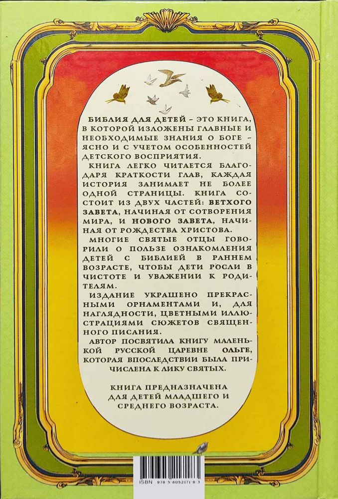Библия для детей составлена известной детской писательницей княгиней Марией Александровной Львовой для детей императорской четы и посвящена маленькой русской царевне Ольге, старшей дочери последнего Российского Императора Николая II.