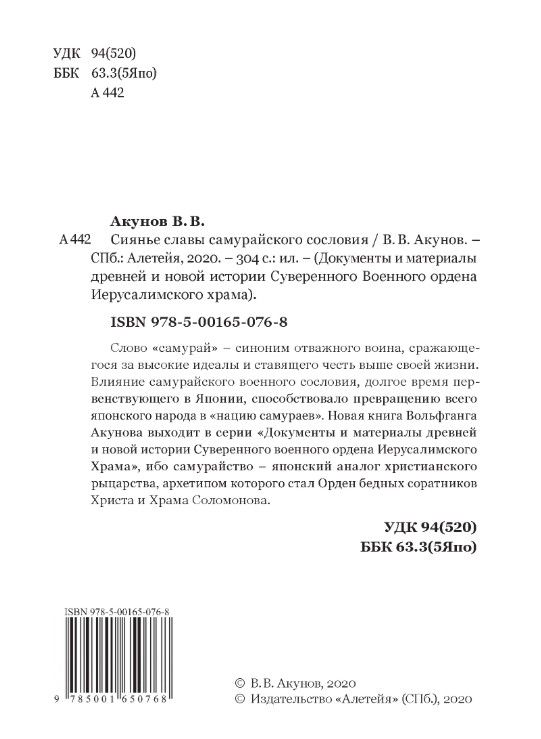 Слово «самурай» – синоним отважного воина, сражающегося за высокие идеалы и ставящего честь выше своей жизни. Влияние самурайского военного сословия, долгое время первенствующего в Японии, способствовало превращению всего японского народа в «нацию самураев». Новая книга Вольфганга Акунова выходит в серии «Документы и материалы древней и новой истории Суверенного военного ордена Иерусалимского Храма», ибо самурайство – японский аналог христианского рыцарства, архетипом которого стал Орден бедных соратников Христа и Храма Соломонова.