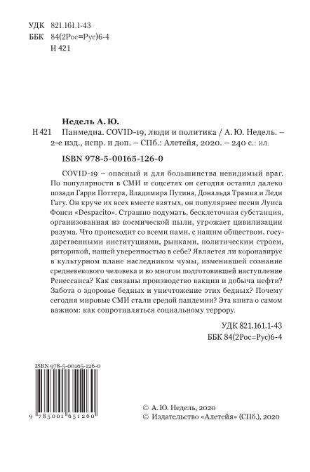COVID-19 — опасный и для большинства невидимый враг. По популярности в СМИ и соцсетях он сегодня оставил далеко позади Гарри Поттера, Владимира Путина, Дональда Трампа и Леди Гагу. Он круче их всех вместе взятых, он популярнее песни Луиса Фонси Despacito. Страшно подумать, бесклеточная субстанция, организованная из космической пыли, угрожает цивилизации разума. Что происходит со всеми нами, с нашим обществом, государственными институциями, рынками, политическим строем, риторикой, нашей уверенностью в себе? Является ли коронавирус в культурном плане наследником чумы, изменившей сознание средневекового человека и во многом подготовившей наступление Ренессанса? Как связаны производство вакцин и добыча нефти? Забота о здоровье бедных и уничтожение этих бедных? Почему вакцинация является жидкой полицией, берущей под свой контроль население планеты? Почему сегодня мировые СМИ стали средой пандемии? Эта книга о самом важном: как сопротивляться социальному террору.