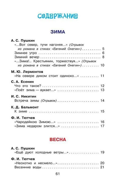 В этой книге собраны самые известные стихотворения русских поэтов — А. С. Пушкина, М. Ю. Лермонтова, Ф. И. Тютчева, А. Н. Плещеева, С. А. Есенина и других, воспевающих красоту природы родного края. В книге четыре раздела, посвященных каждому из четырех сезонов.