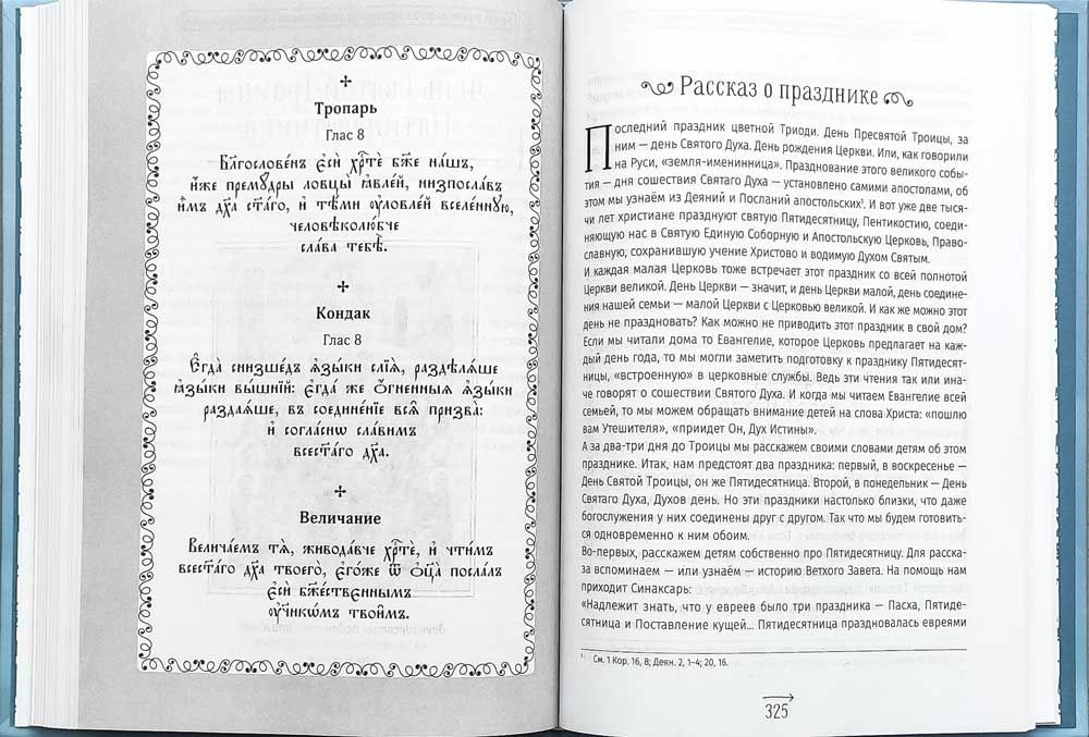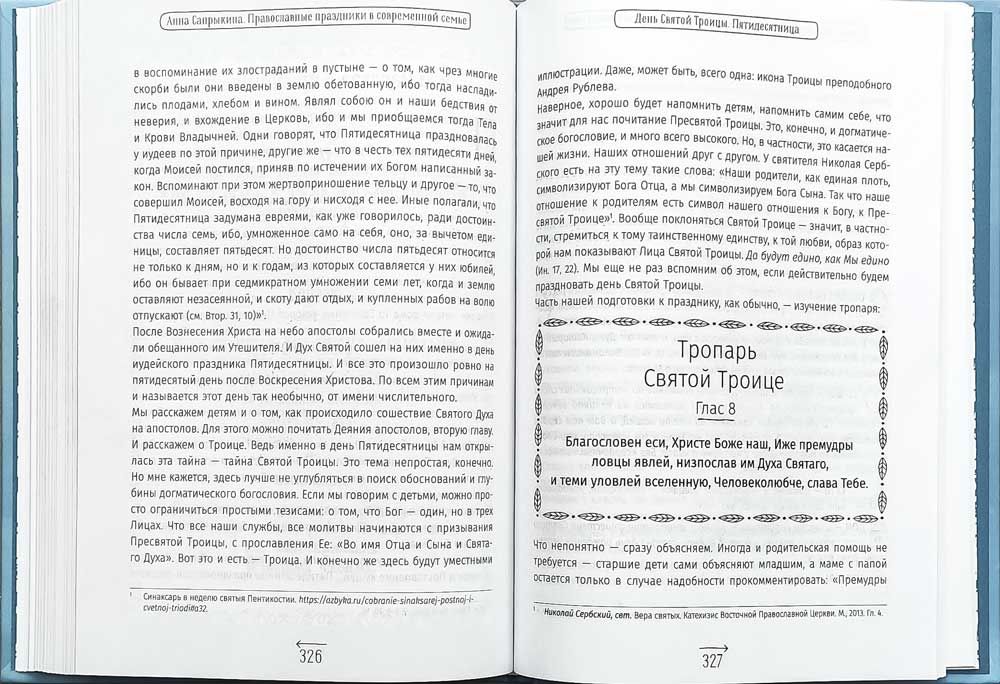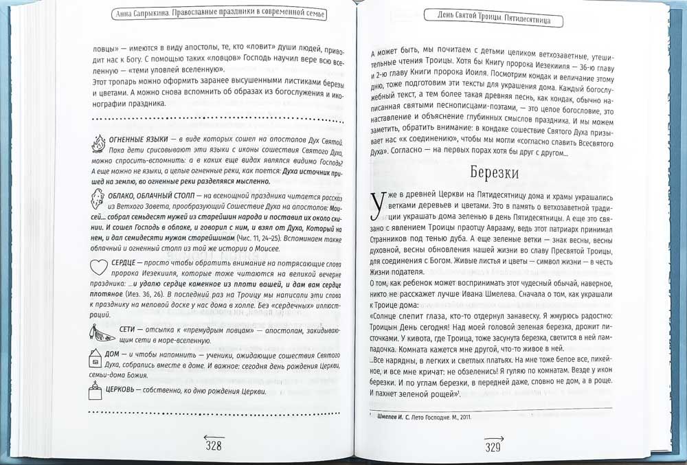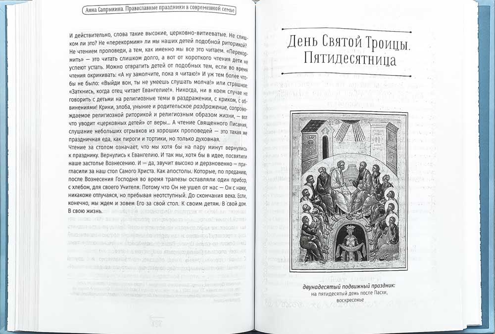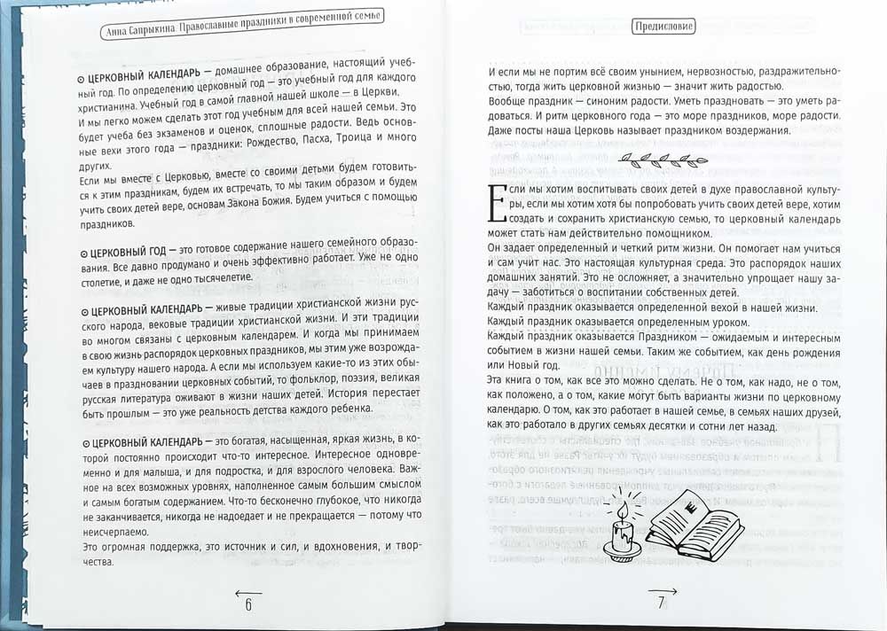 Это практически методическое пособие, с рецептами праздничных блюд и детских поделок, с идеями организации бытовых вопросов, с примерами пошаговой подготовки к каждому церковному празднику. А еще в этой книге собраны рассказы о живом опыте современных семей, которые живут в ритме церковной жизни.