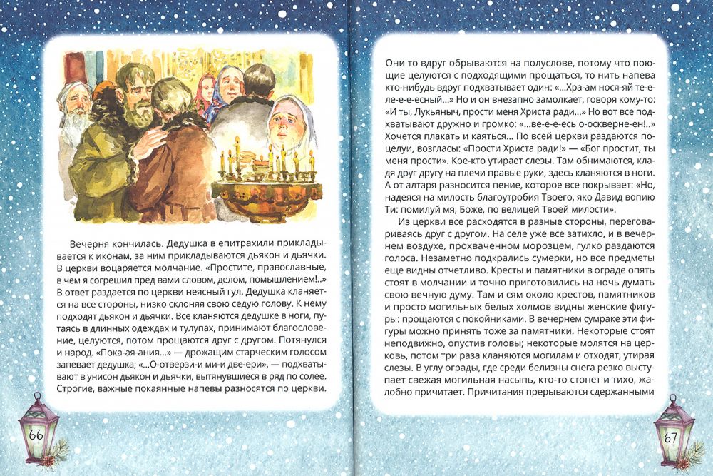 Повесть носит автобиографический характер: священник Сергий Соколов (1866-1940) вспоминает о своем детстве, проведенном в доме деда, сельского священника Иоанна Добротворцева, истинного Божиего служителя, смиренного труженика и мудреца. Перед читателем предстает рязанское село на Оке, крестьянская паства отца Иоанна, его семья; вместе с героями повести мы, час за часом, проживаем один из самых пронзительных дней церковного года — канун начала Великого поста, Прощеное воскресенье.